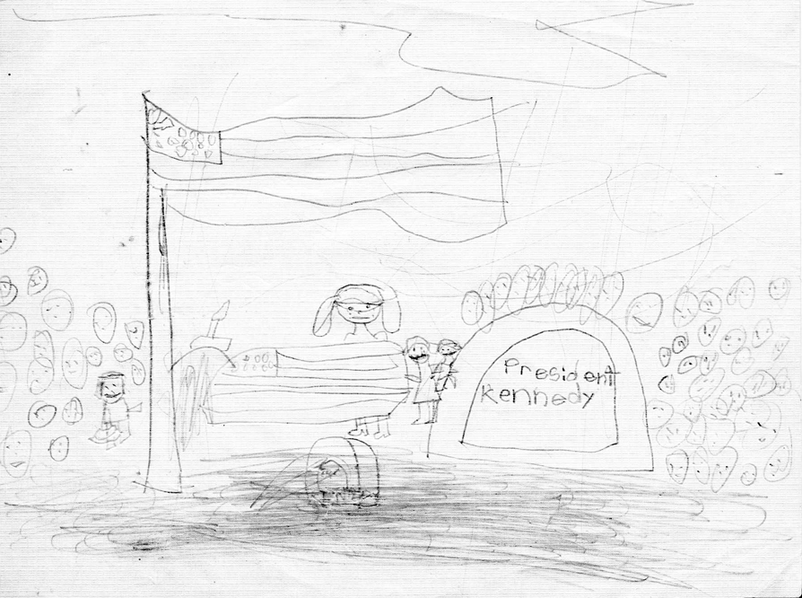 Well, I doubt it was my first drawing, but it is the oldest one that I still have in my possession. The drawing, done on an unusual coated linen paper, is of the funeral of President John F. Kennedy. My mother kept the drawing for years and about five years ago gave me a bag of memorabilia which included the drawing.