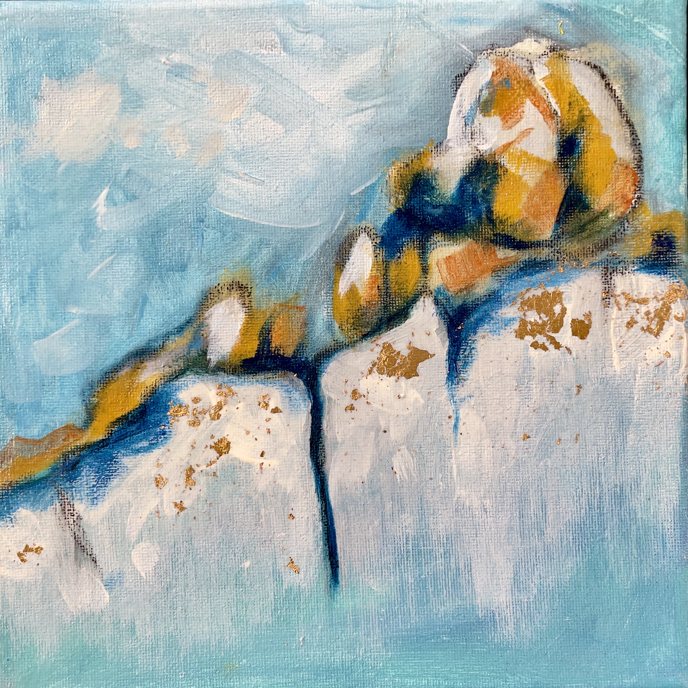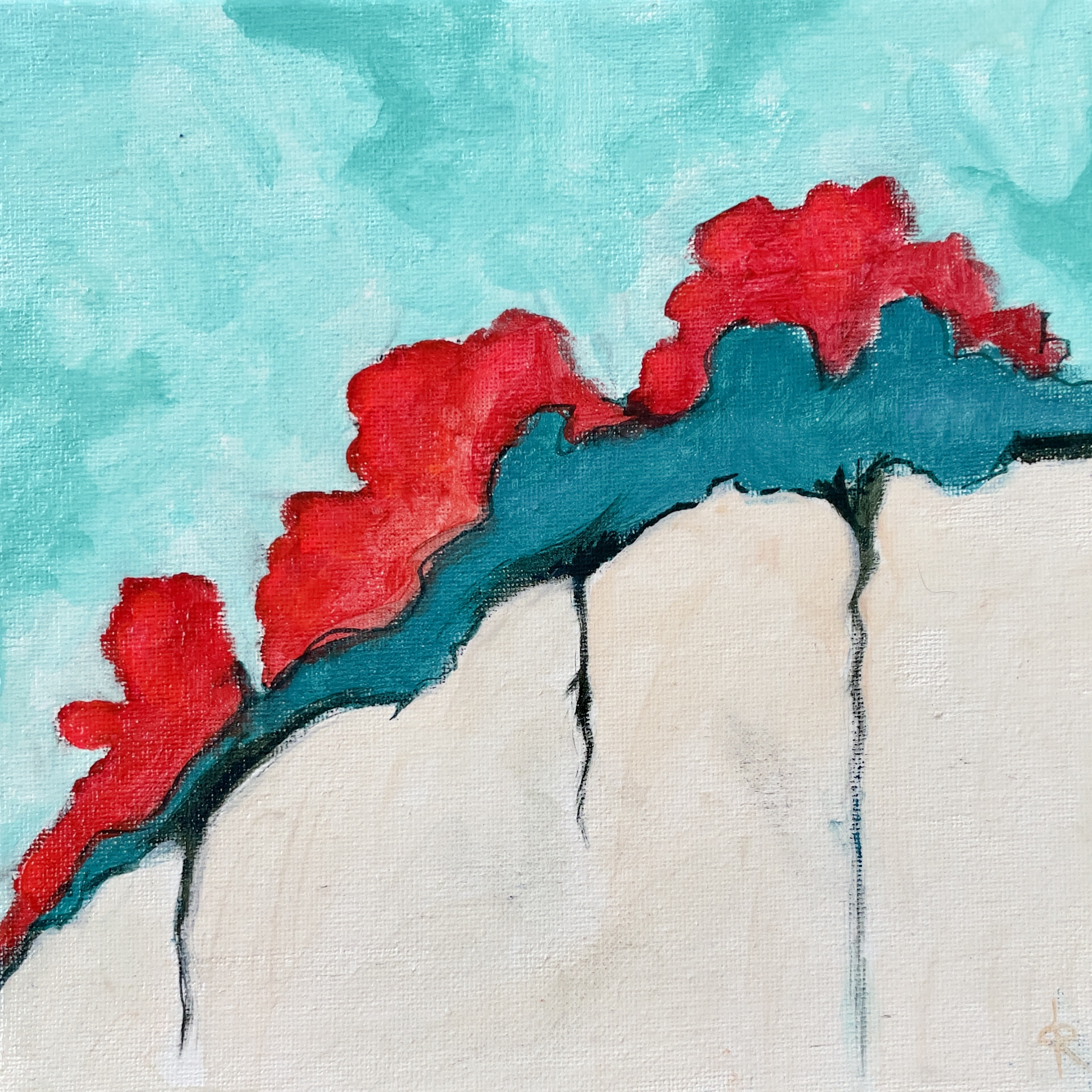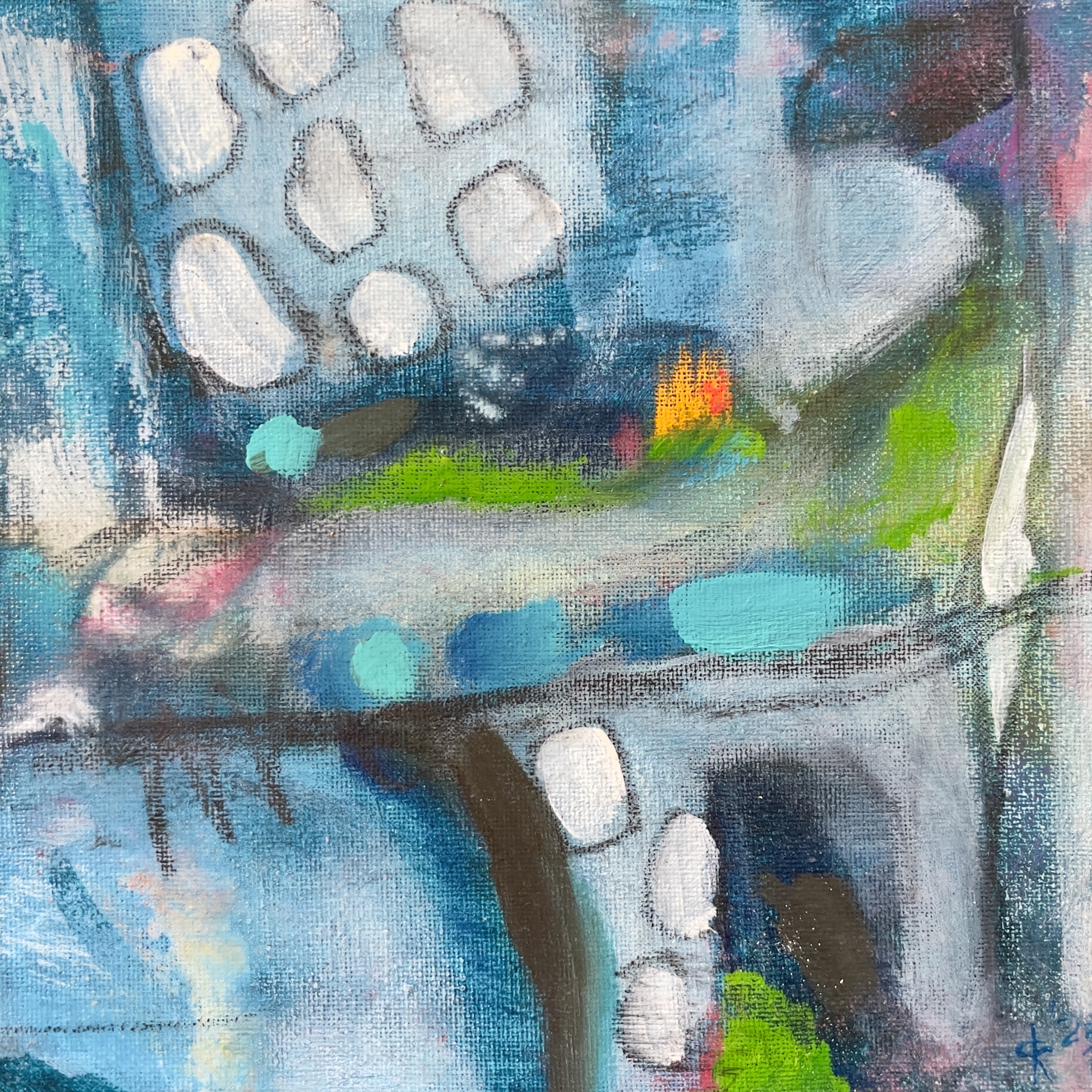 My close friends are astounded by the fact that I can create what I do without the ability to bring up an image. It’s not bothersome or as shocking as when I first learned of it, but I’ve now determined that I react to either conversation for my ideas, or if I am in front of a blank canvas, I just choose some paint colors, and react to that first brush stroke. Sometimes, I use a reference photo for a particular shape/form of an object but then it’s reaction after reaction after reaction.