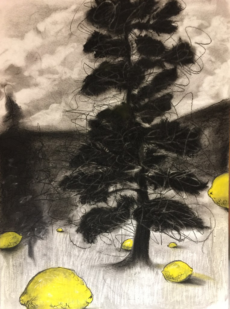 When working on a “crop art” version of the tree, which was a demo for a high school class, she